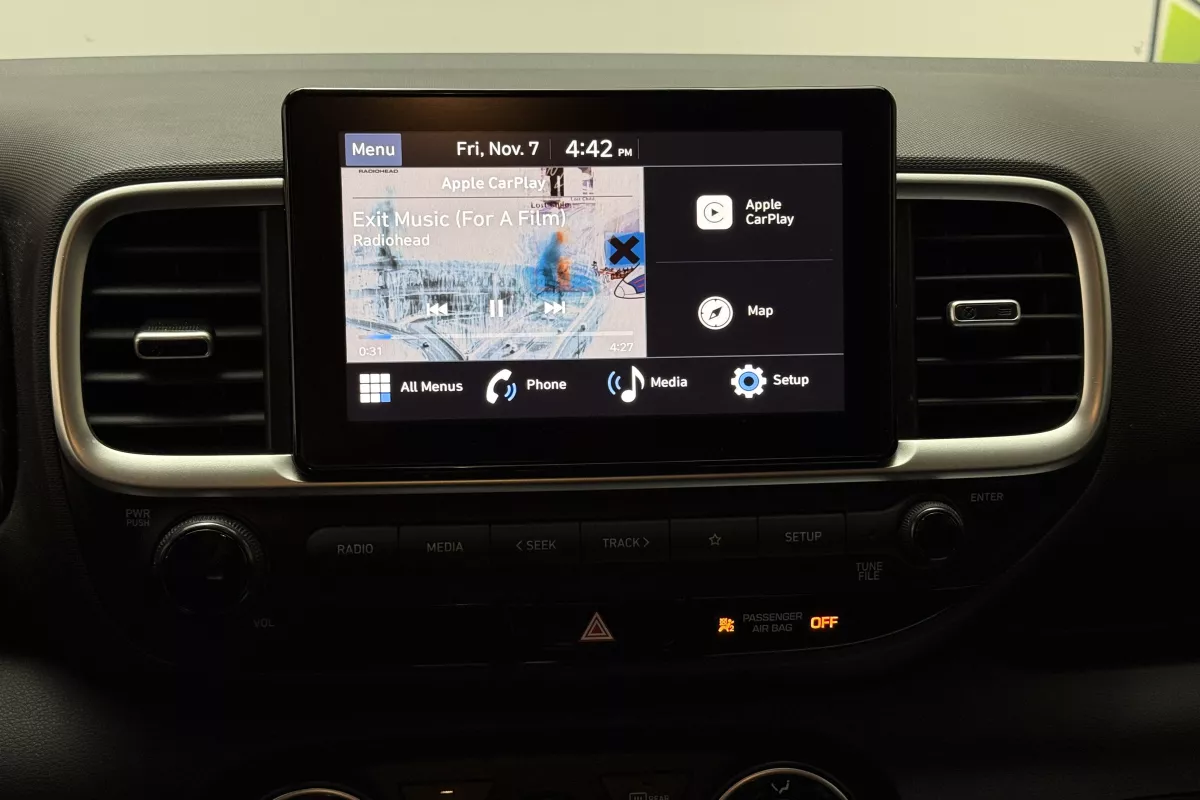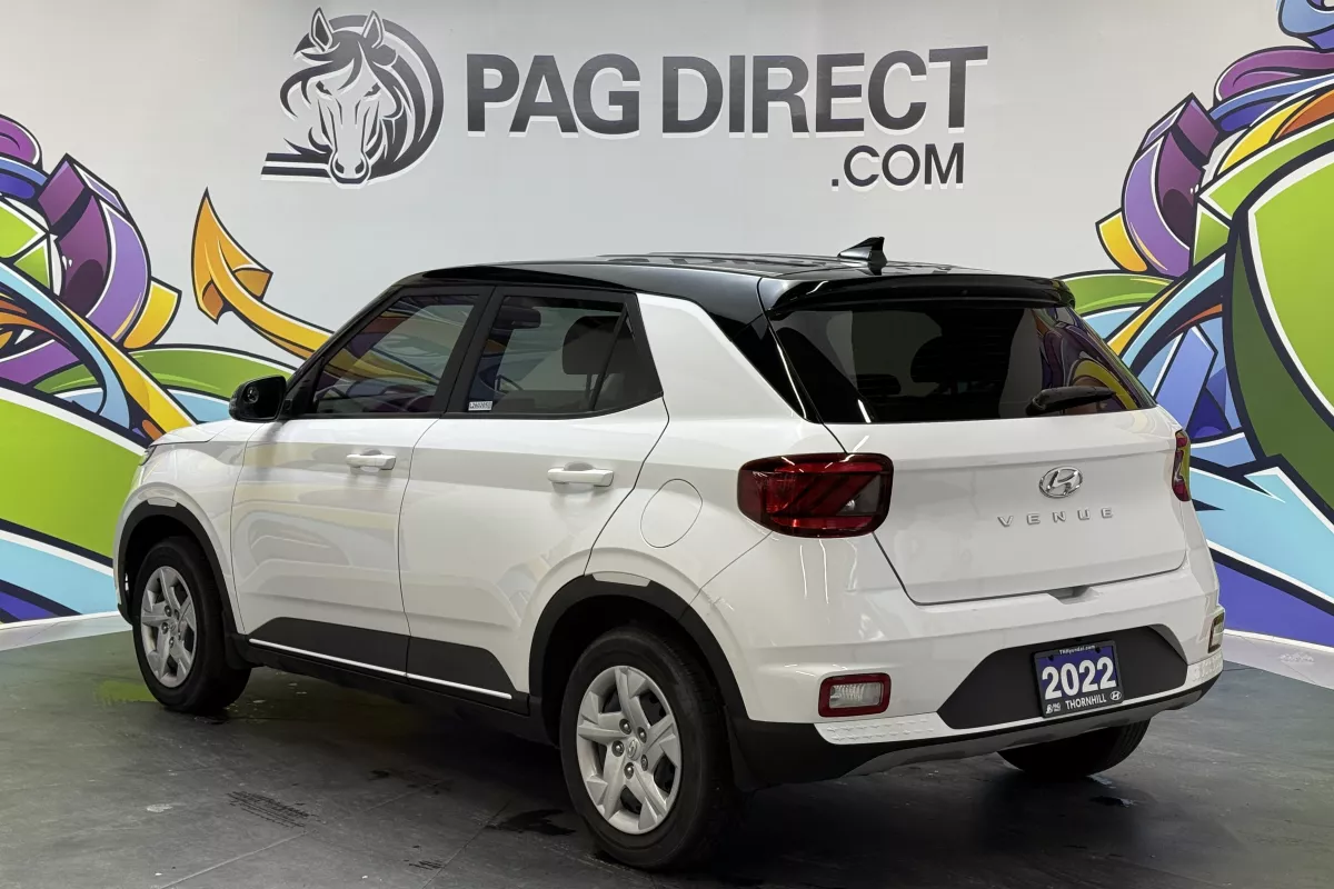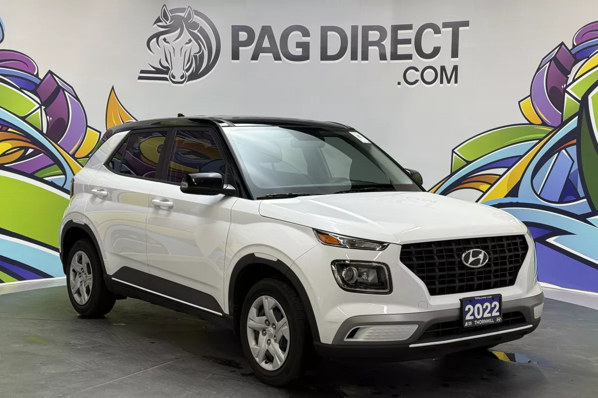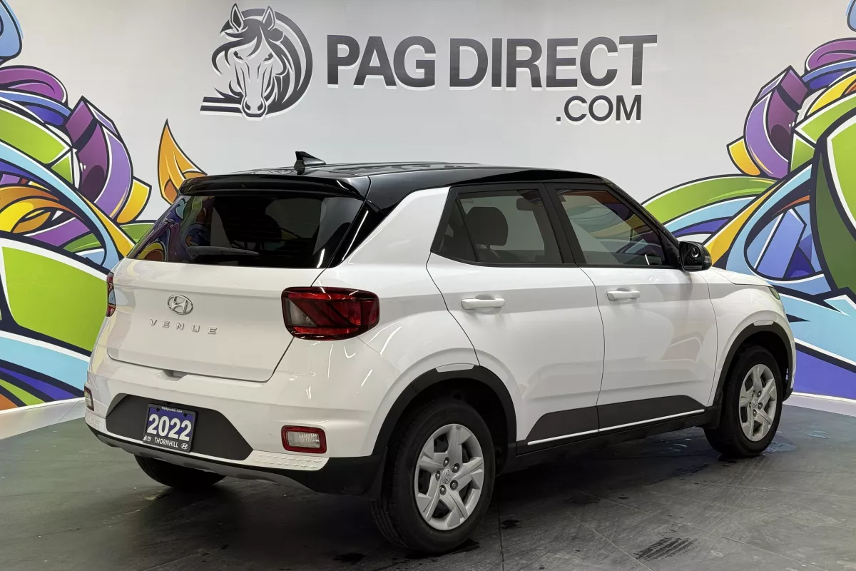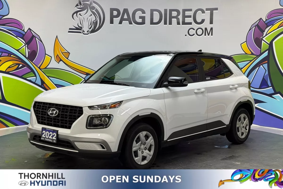 Compact, efficient, and stylish the 2022 Hyundai Venue Essential brings confidence and convenience to your daily drive. Featuring a sleek Polar White exterior with a contrasting black roof, this two-tone Venue adds personality to its practicality. Packed with smart connectivity and driver-assist technologies, it's the perfect crossover for life in the city.