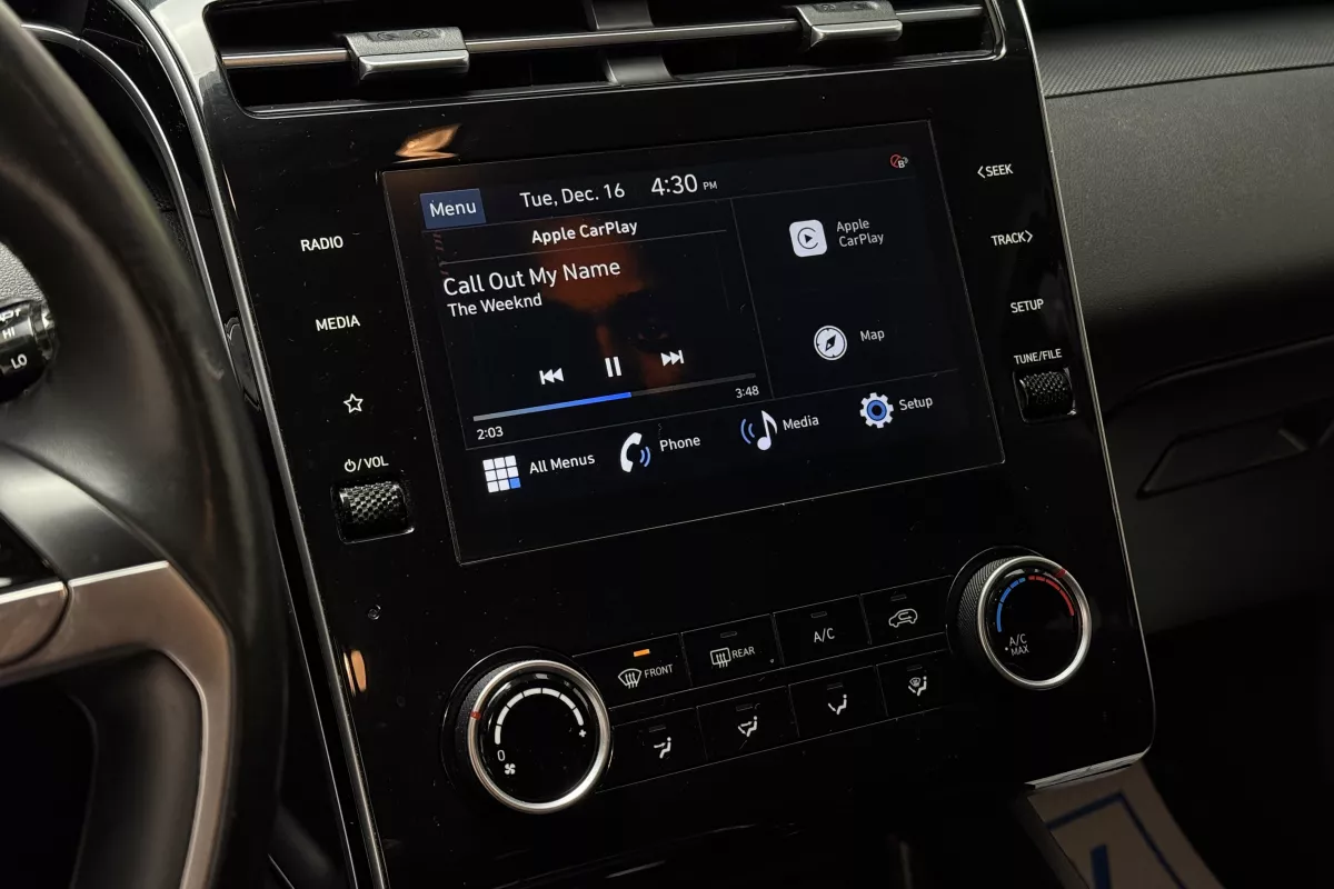 Modern, stylish, and loaded with advanced safety features, this 2022 Hyundai Tucson Preferred FWD is one of the most popular SUVs in its classoffering incredible value, comfort, and technology. Hyundai redesigned the Tucson in 2022, giving it a bold new exterior, a refined cabin, and significantly upgraded tech across all trims. Inside, you'll enjoy heated front seats, a heated steering wheel, and a clean touchscreen interface with wireless Apple CarPlay and Android Autoperfect for seamless navigation, music, and hands-free communication. The Tucson Preferred also includes Blind-Spot Collision Warning, Lane Keep Assist, and a high-definition backup camera for added confidence on every drive. Whether you're commuting through the city or heading out on longer trips, this Tucson delivers excellent fuel efficiency, a smooth drive, and the modern features today's drivers love.