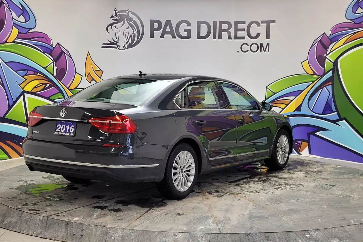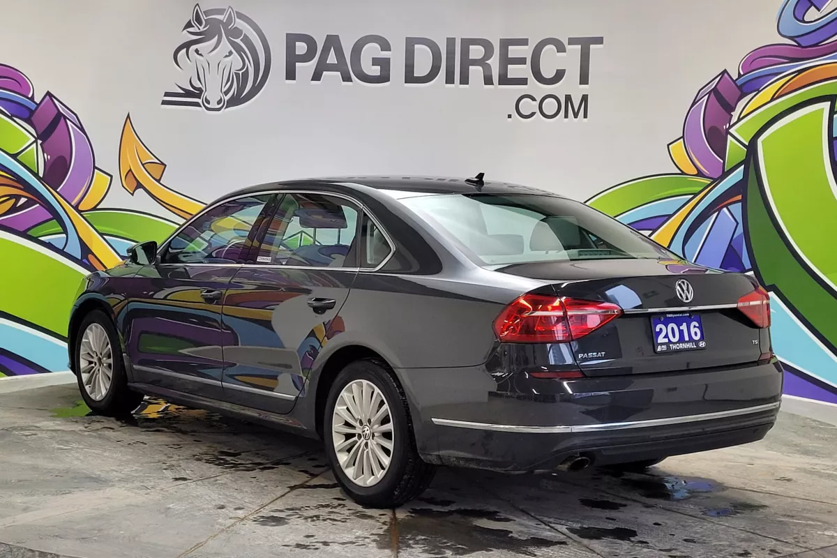 Comfortable, spacious, and engineered with classic German refinement, this 2016 Volkswagen Passat Comfortline is a midsize sedan designed to deliver a smooth, confident driving experience. With its roomy interior, efficient turbocharged engine, and well-balanced ride, the Passat is an excellent choice for commuting, long highway drives, or everyday family use. Inside, the cabin offers a clean and practical layout with heated front seats and a power-adjustable driver's seat, providing comfort and support in all seasons. Dual-zone automatic climate control allows both driver and passenger to maintain their preferred temperature settings, while the sunroof brings natural light into the cabin for a more open, airy feel. Technology is straightforward and user-friendly, featuring Bluetooth connectivity for hands-free calling and audio streaming, along with a factory backup camera to assist with parking and reversing. Physical buttons and controls keep operation simple and intuitive, making the system reliable and easy to use. Under the hood, the turbocharged 1.8L TSI engine is paired with a smooth automatic transmission, delivering responsive acceleration and strong fuel efficiency. With its composed handling, quiet ride, and generous rear-seat and trunk space, this Passat Comfortline offers a refined driving experience without sacrificing practicality.